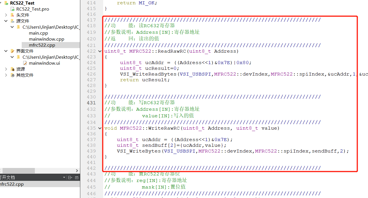 基础流程在mainwindow里实现,驱动在mfrc522类里实现。