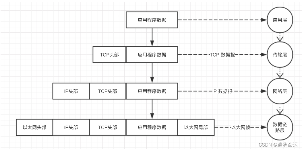 借用图:显示五层协议中的数据的封装情况。