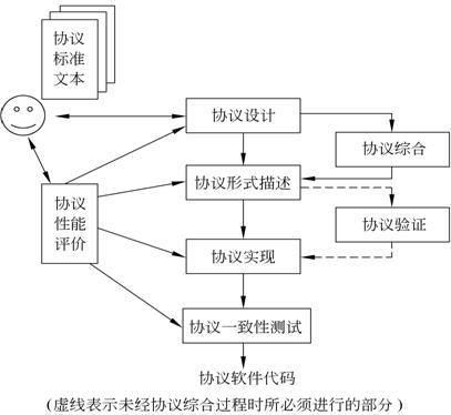 (1) 协议的开发主要包括协议设计、协议形式描述、协议实现和协议一致性测试。协议的开发过程与步骤如图1所示。