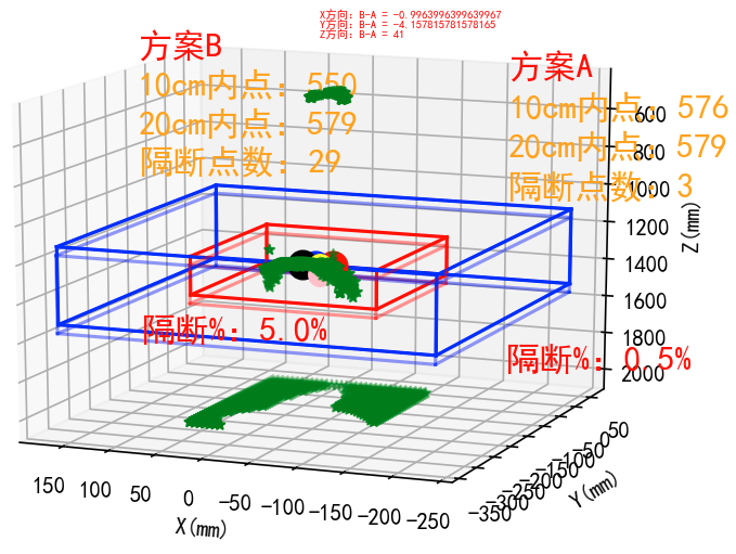 中心点选取方案的测试方法如下:(评估到底有多少手部点被排除在立方体之外)