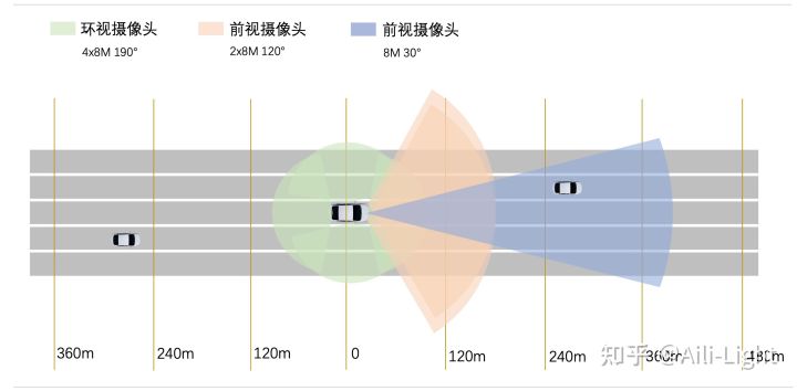 而广角摄像头(FOV120°)也具备15m-120m中等距离探测能力,因此该方案适用于高级别(例如L4)自动驾驶。