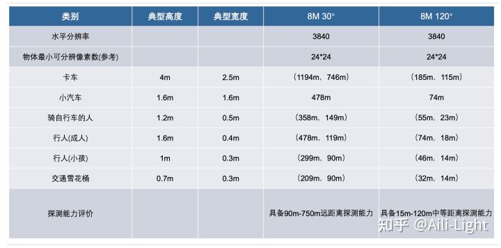表3:L3无人驾驶视觉方案的物体检测距离