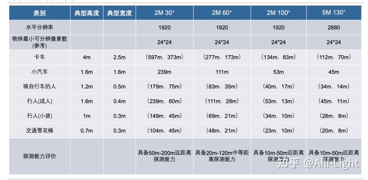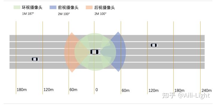例如前视摄像头(2MP,FOV30°),具备50m-200m的探测能力,而广角摄像头(5MP,130°),具备10m-50m的探测能力。