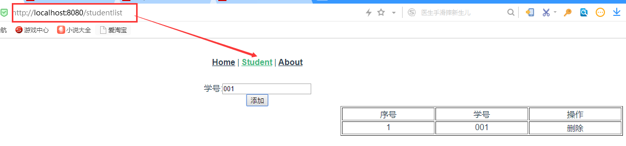 6 测试,浏览器输入http://localhost:8888, 看是否能跳到http://localhost:8080/studentlist, 如果能,则跨域请求成功,反之,