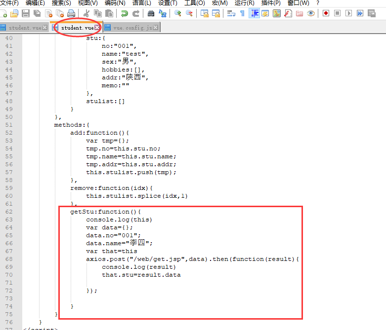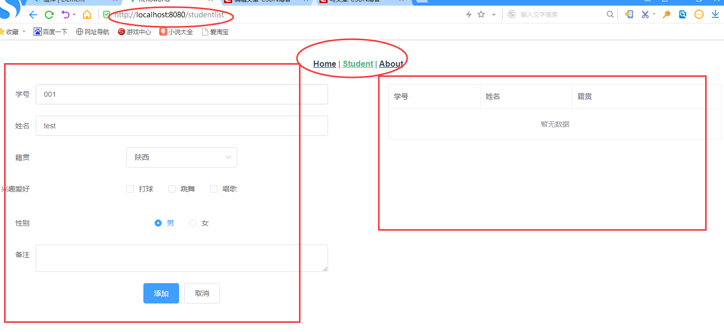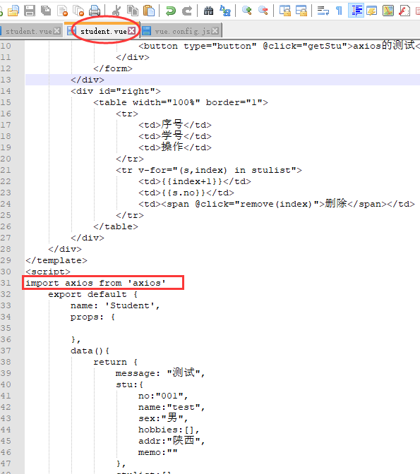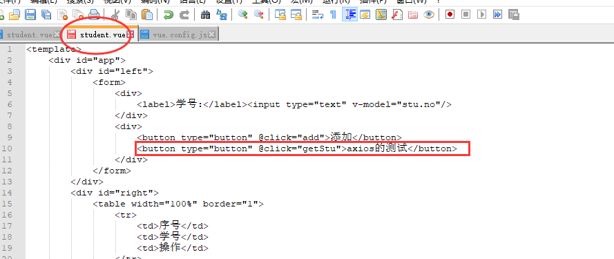 4 在student.vue里面添加测试代码