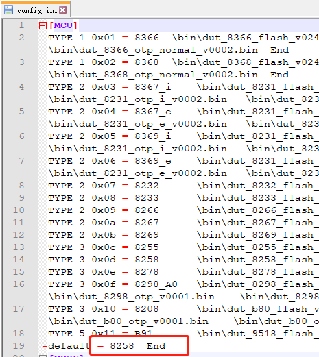 软件每次启动都要重新配置一次,可以修改软件目录下的配置文件configconfig.ini,比如我现在用的是8258芯片,设置为默认为8258芯片,auto mode的配置我没找