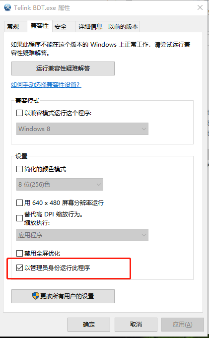 win10启用Telink BDT.exe程序需要使用管理员权限启动,否则很容易崩溃