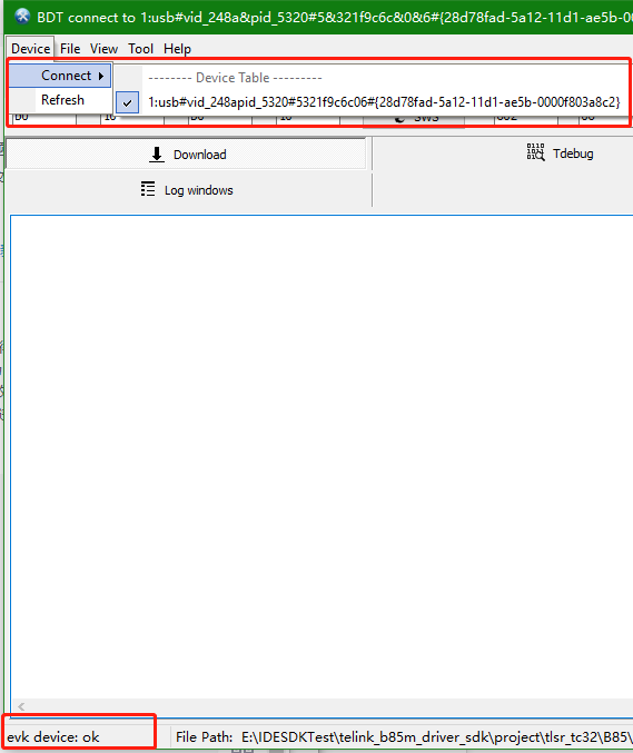 连接 TLSR8258_Dongle,EVK方式连接