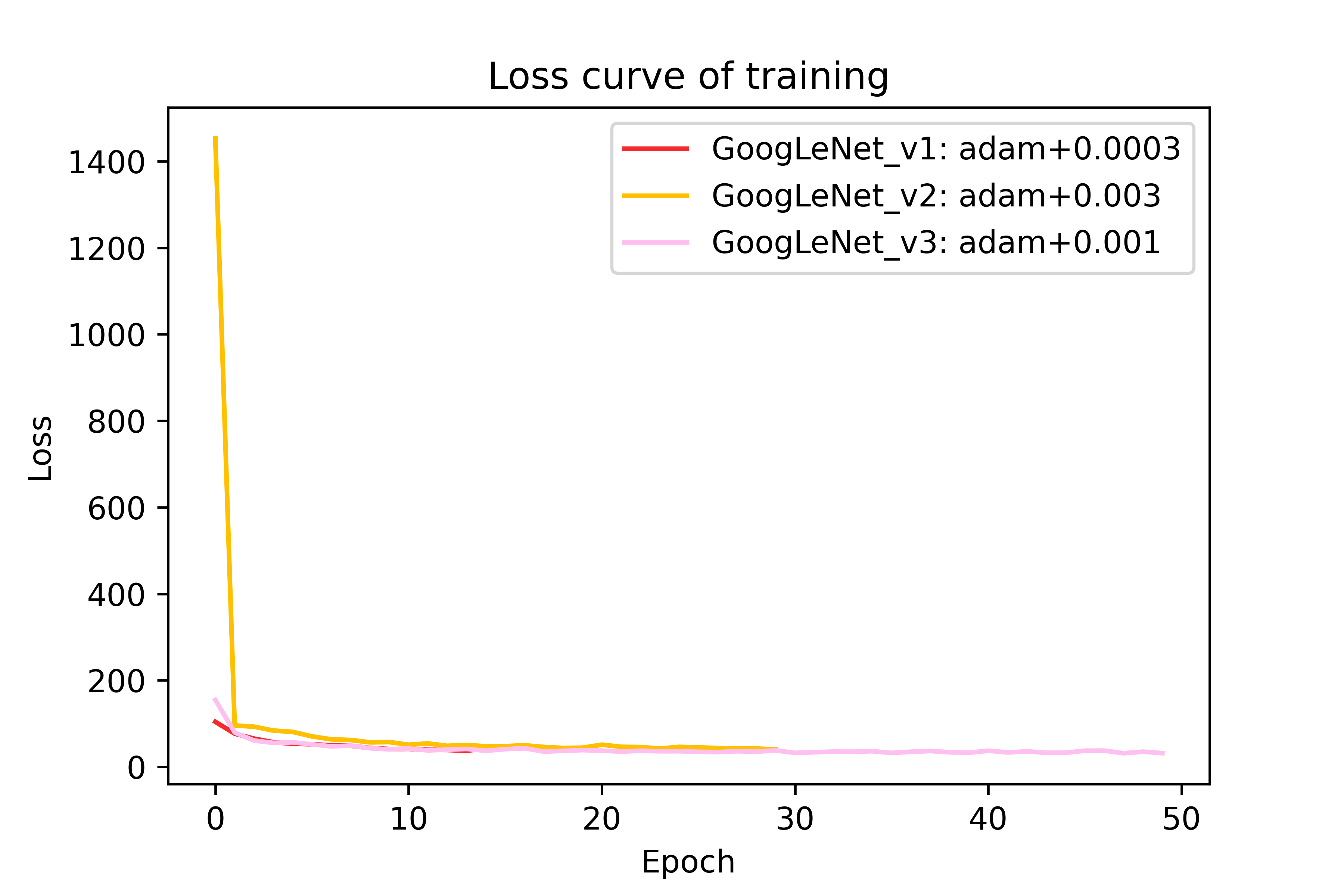 - GoogleNet_v2在第23个Epoch时实现收敛,GoogleNet_v3在第35个Epoch处实现收敛。