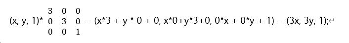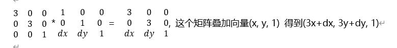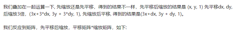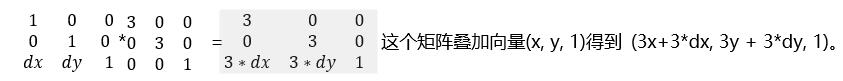 同理,如果是先缩放后平移,缩放矩阵*平移矩阵,如下: