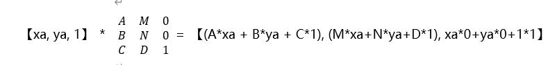 上面的变换,(xa, ya)通过矩阵变换到(xb, yb),用矩阵是如何变换的呢?我们实际就是把(xa, ya)*矩阵 = (xb, yb)。