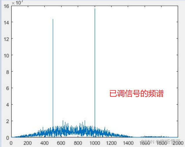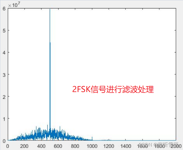 mod_data 即为 2FSK 已调信号。我们可以画出它的频谱,由下图可以清晰的看出 2FSK 信 号有两根谱线,即两个频率值。