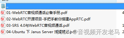 MDN文档:>>>点我进入 WebRTC学习资料大全:>>>点我进入 官方Github地址:>>>点我进入 SDP字段解析:>>>点我进入 个人demo代码地址:>>>点我进入 书籍《WebRTC权威指南》,《Learning WebRTC 中文版》