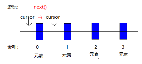 当执行next()时,cursor会自动往下移动