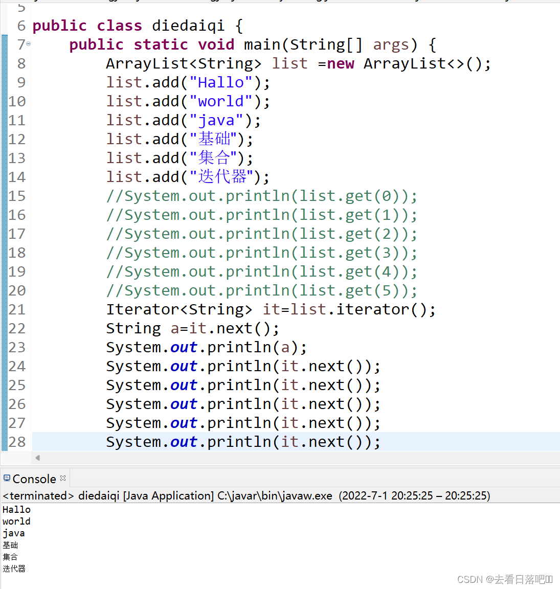 先创建Iterator得到当前集合的迭代器对象