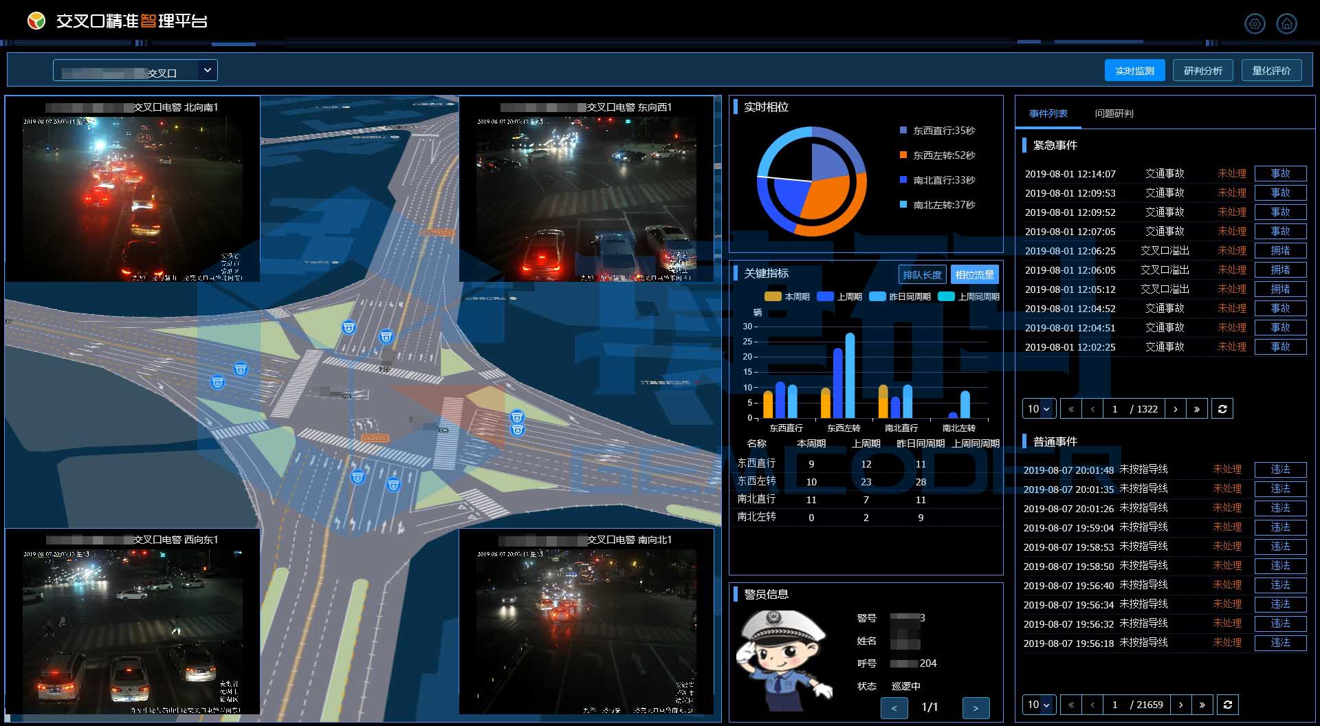 2.对各交叉口的交通流、信号、事故、违法、勤务等多维数据进行分析研判,定位核心问题所在,提出交叉口治理措施,并对措施实施后的效果进行量化评价,从数据侧量化交警治理成效。