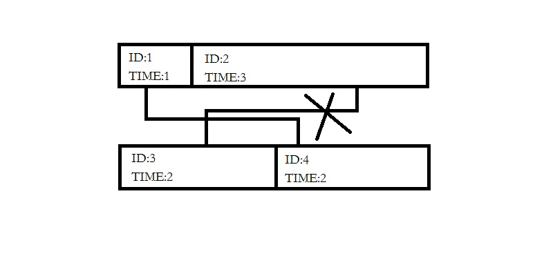 示意图中的黑线代表工序先后关系,样例1情况如下: