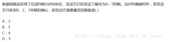 GBN协议中,发送方在发完一个数据帧后,连续发送若干个数据帧,即使在连续发送过程中收到了接收方发来的应答帧,也可以继续发送。且发送方在每发送完一个数据帧时都要设置超时定时器。只要在所设置的超时时间内仍未收到确认帧,就要重发相应的数据帧。如:当发送方发送了N个帧后,若发现该N帧的前一个帧在计时器超时后仍未返回其确认信息,则该帧被判为出错或丢失,此时发送方就不得不重新发送出错帧及其后的N帧