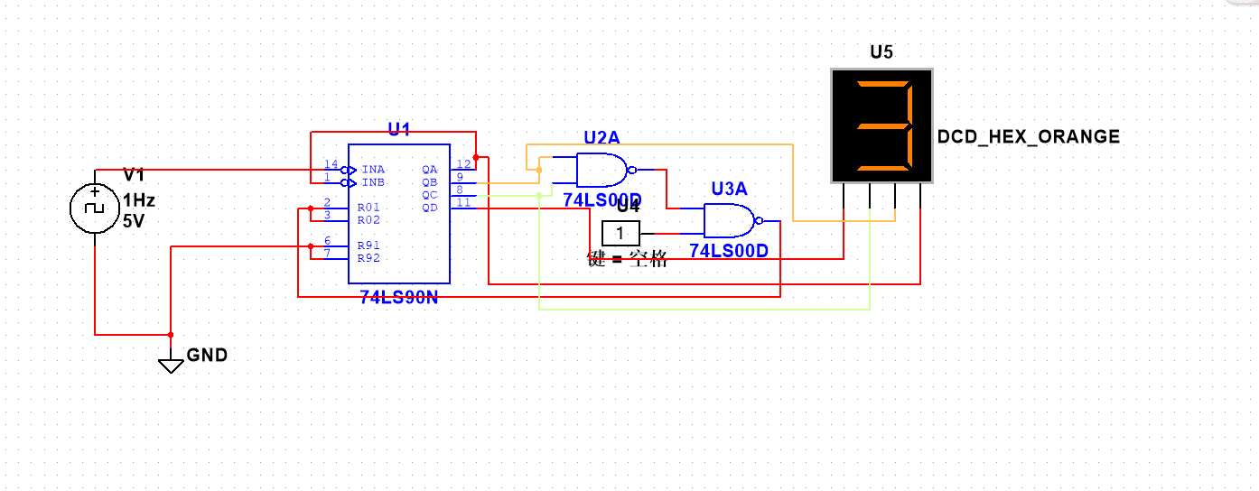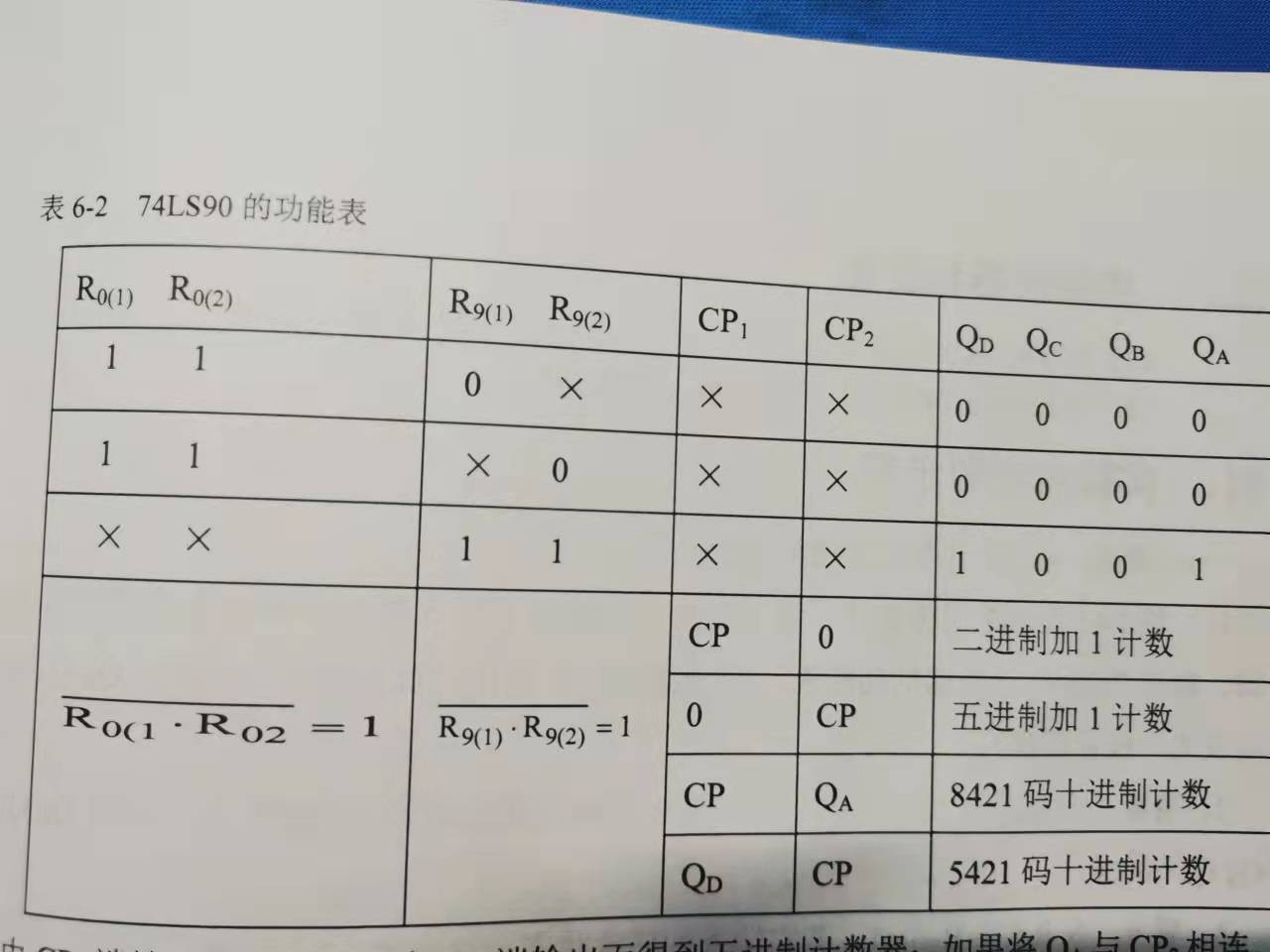 (1)用反馈复位法将74LS90构成一个6进制计数器