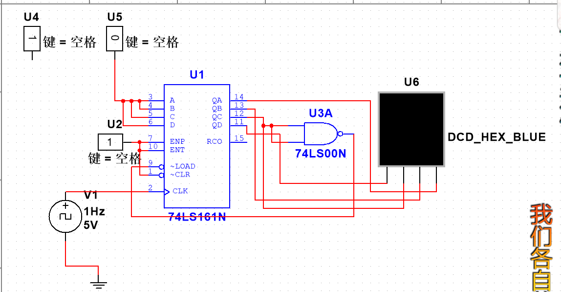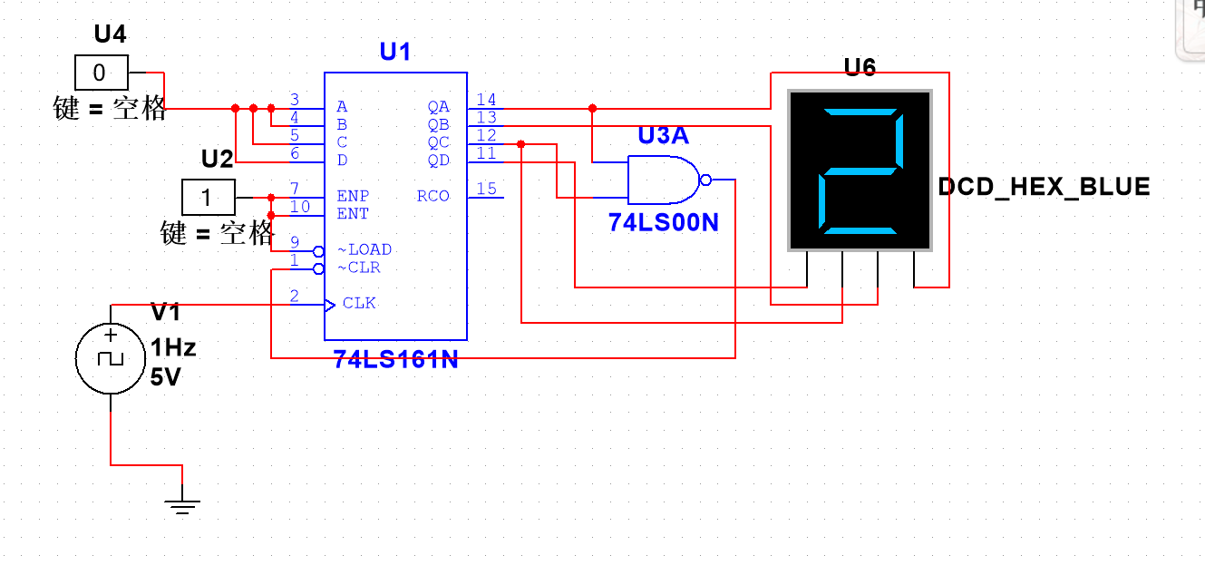(2)用反馈复位法将74LS161构成一个五进制计数器