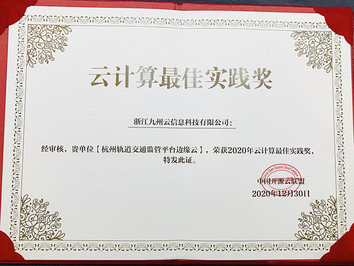 此次评选共设置了:2020年云计算卓越产品/解决方案奖、2020年云计算最佳实践奖、2020年云计算创新企业奖。杭州轨交监管平台边缘云案例凭借较高的行业知名度、先进的方案、创新的部署以及普适性高荣膺“2020年云计算最佳实践奖”。