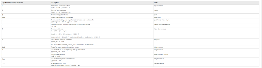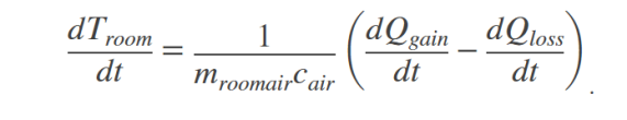 比如确定了Troom、mroomair、cair、Qgain、t、Qloss等变量,写出了他们的关系式: