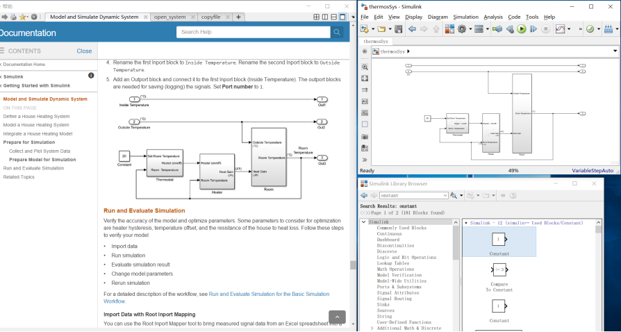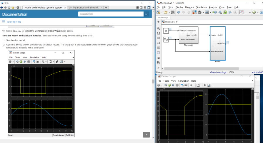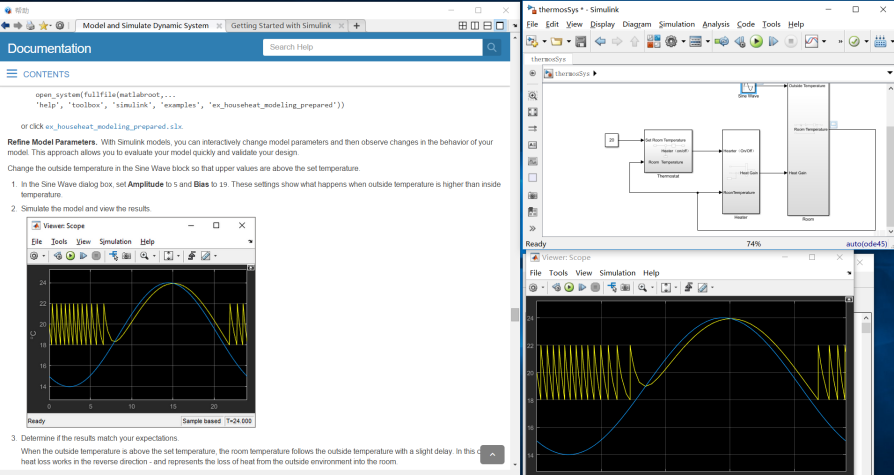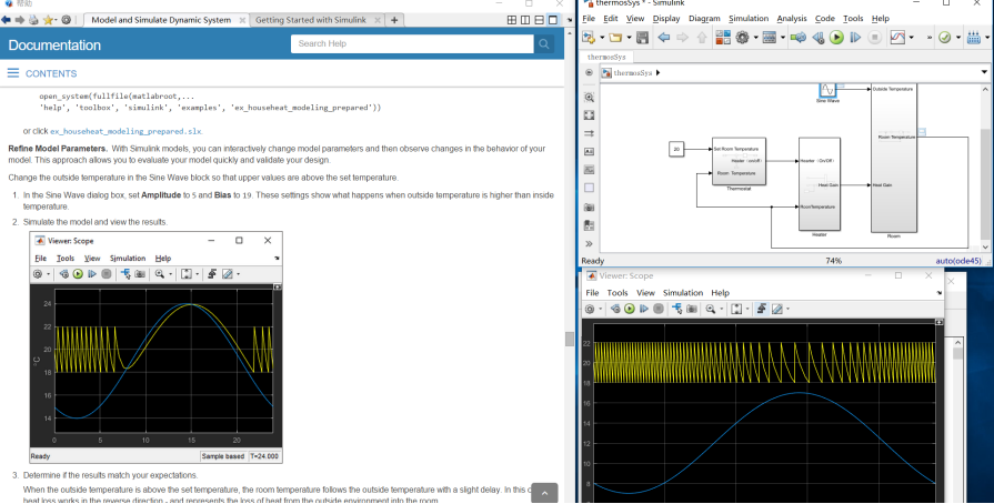实验3:一个加热器加热屋子的实验,目的是了解如何建模和仿真一个动态系统。最终目的是了解matlab的simulink仿真的流程,是让我们学习如何由设计到公式、分模块、每个模块测试、联调、一直到结合现实数据修正模型的。
