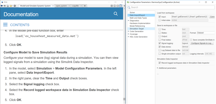 之后就是双击打开一个输入端口,选中并导入xlsx数据,添加到仿真。然后再把这个xlsx保存成mat格式,并且现在不仅包含了数据信息,里面还有连接信息。而且由于mark for simulation 了一手,所以现在在workspace里面也有这个叫sheet1的exel表格: