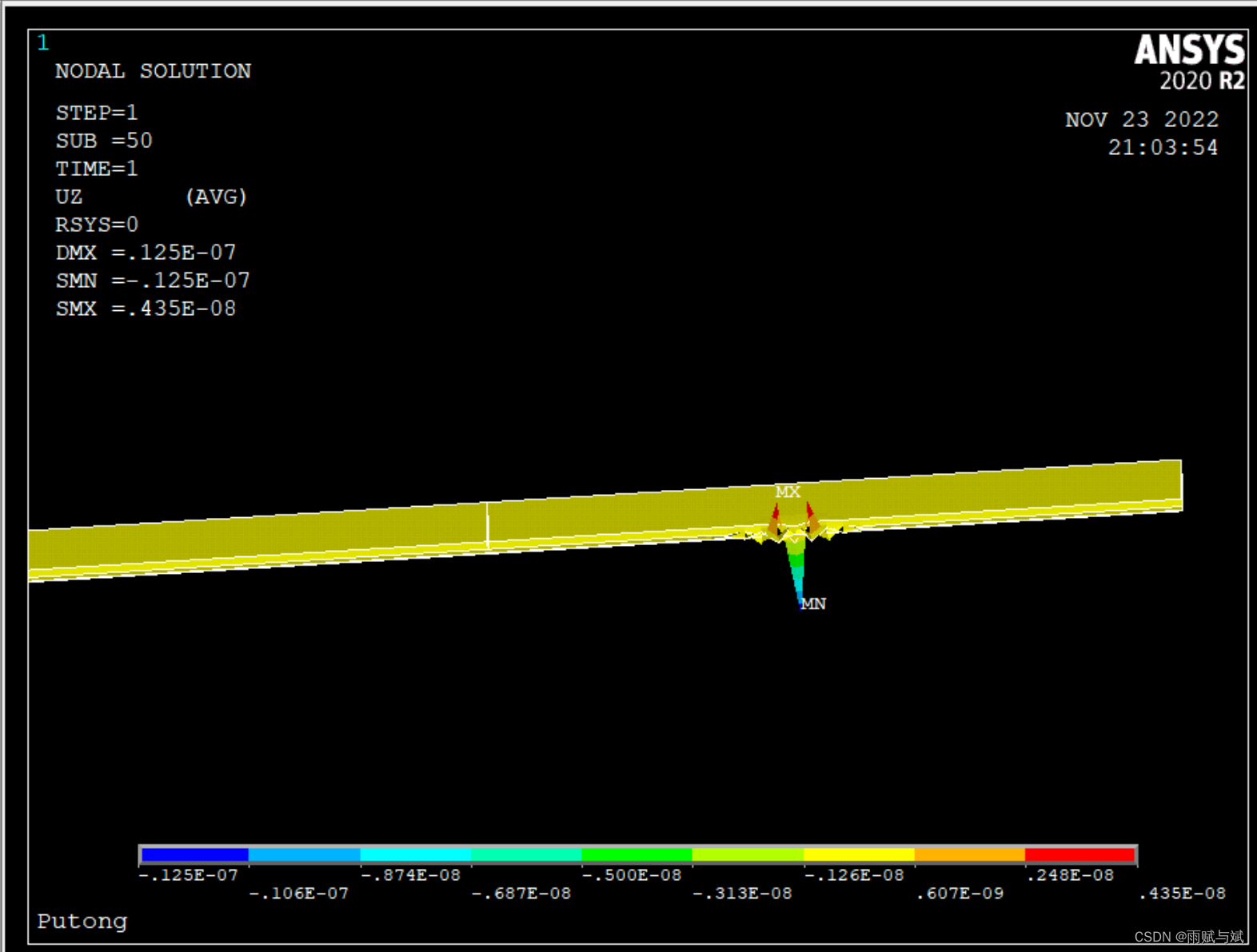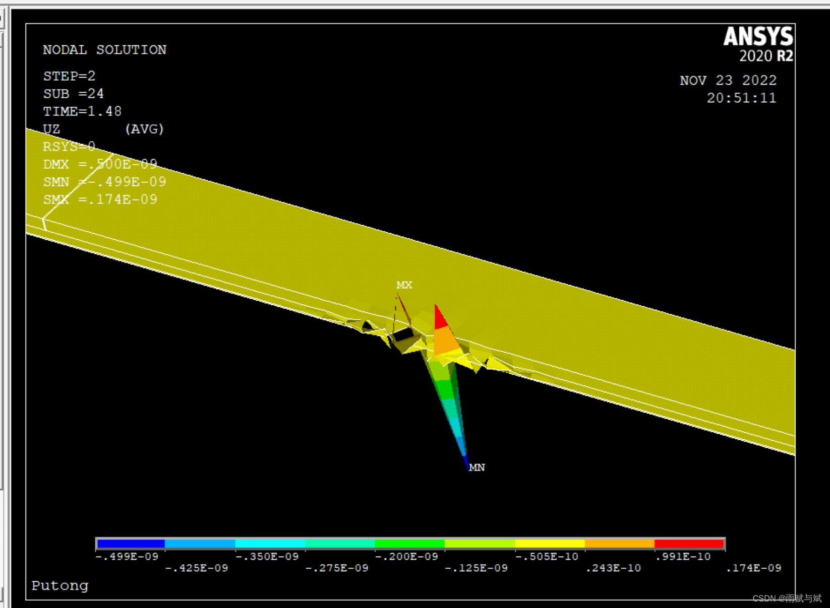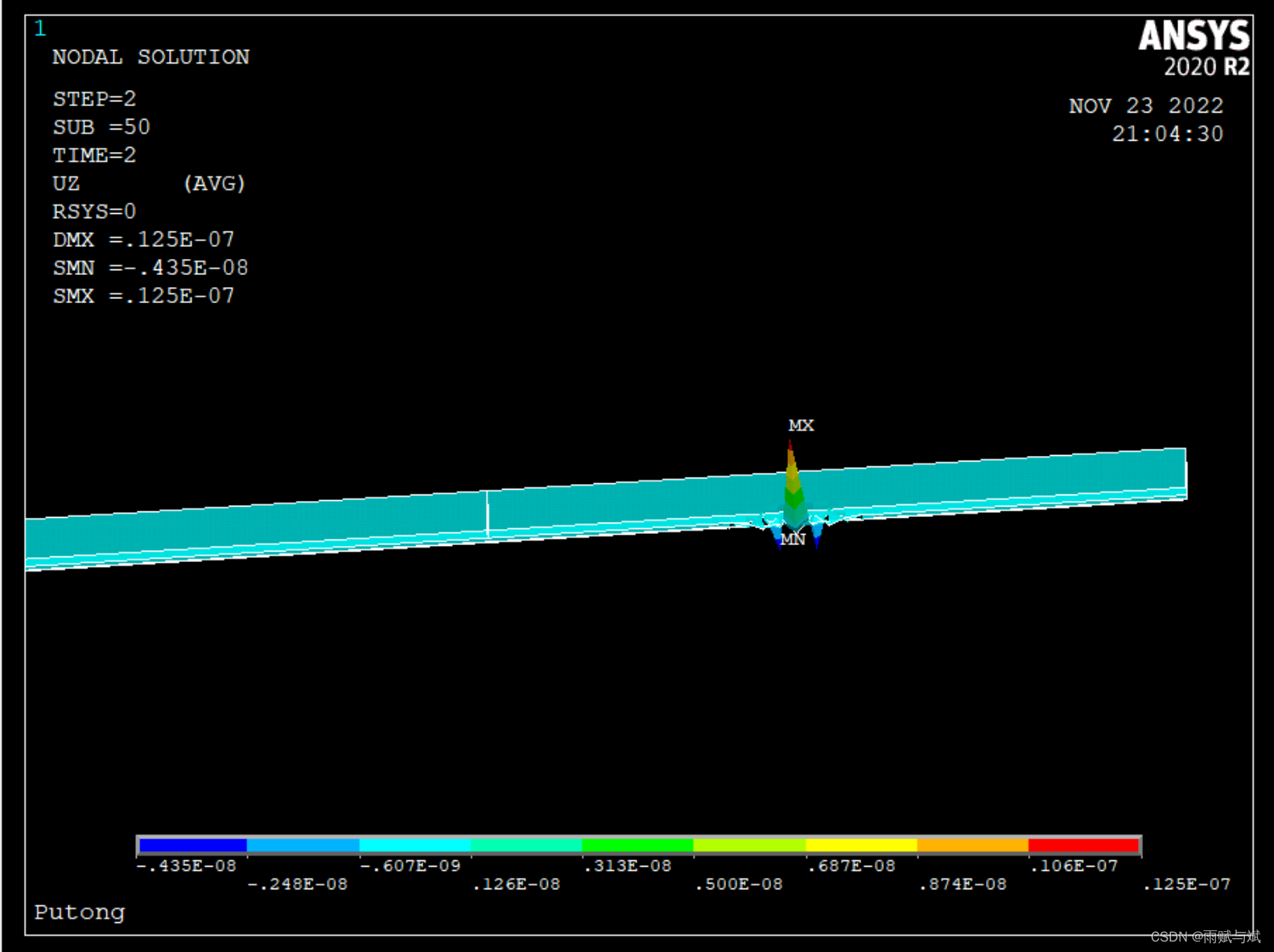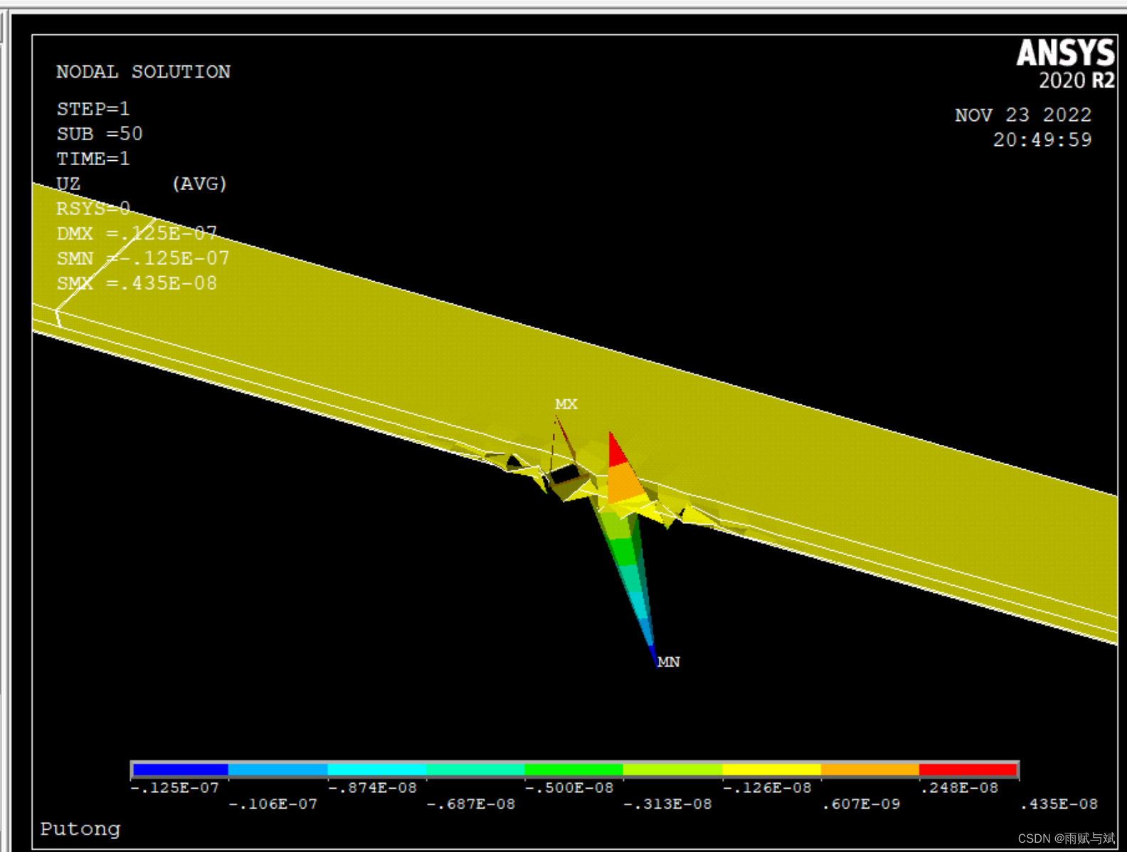 F,load_point,fz,load_f ! 施加载荷 F, NODE, Lab, VALUE, VALUE2, NEND, NINCnsubst,50