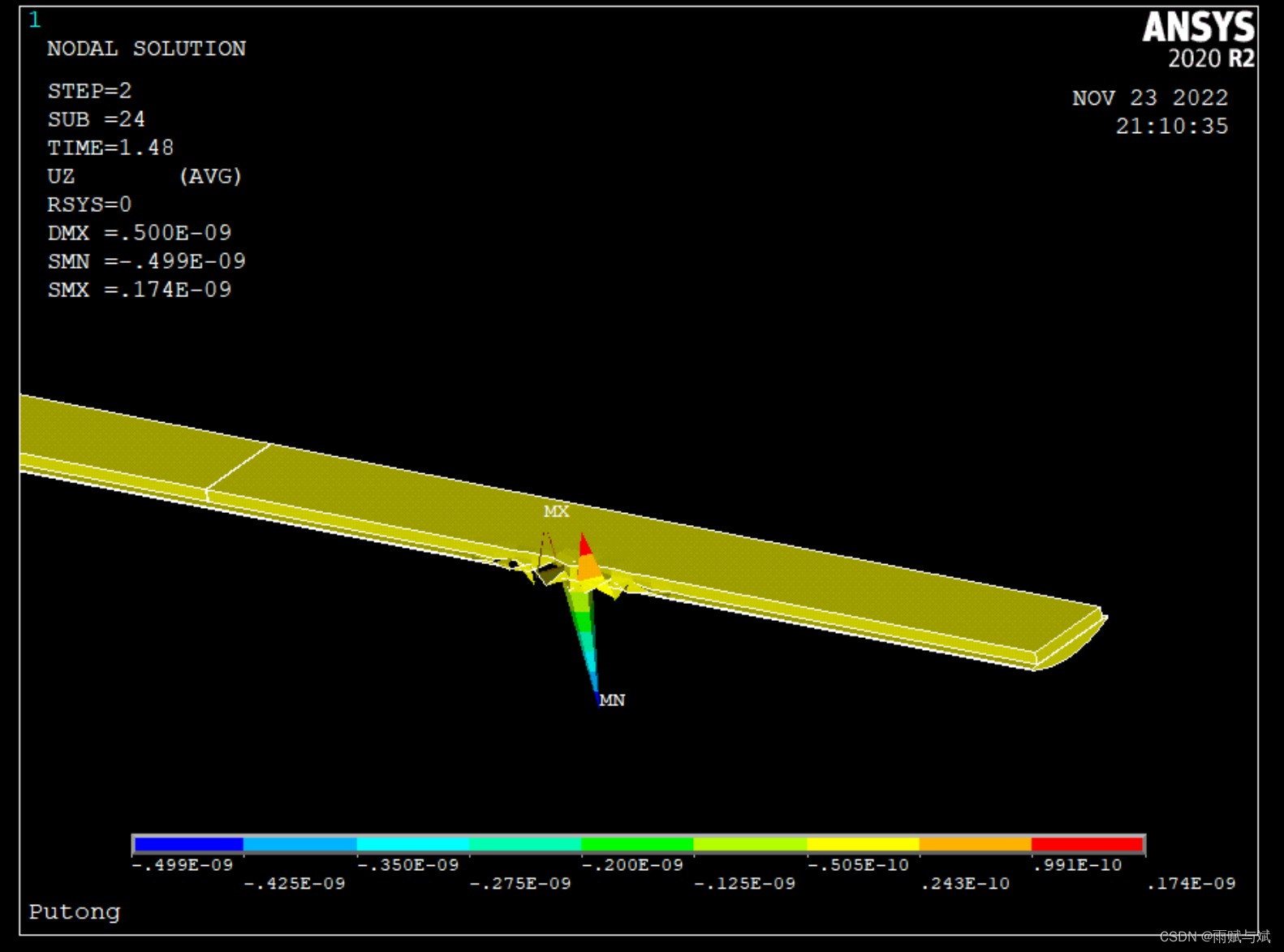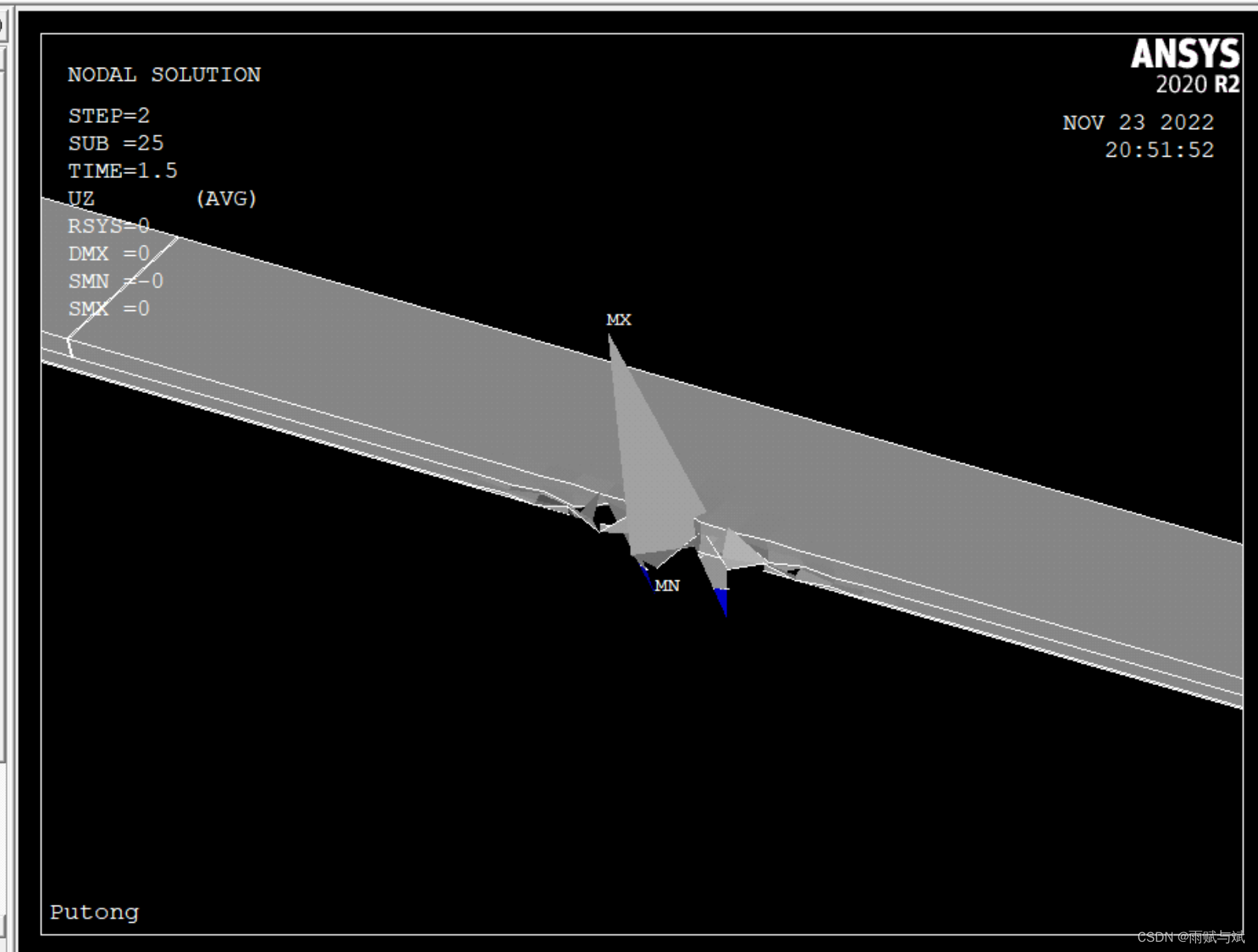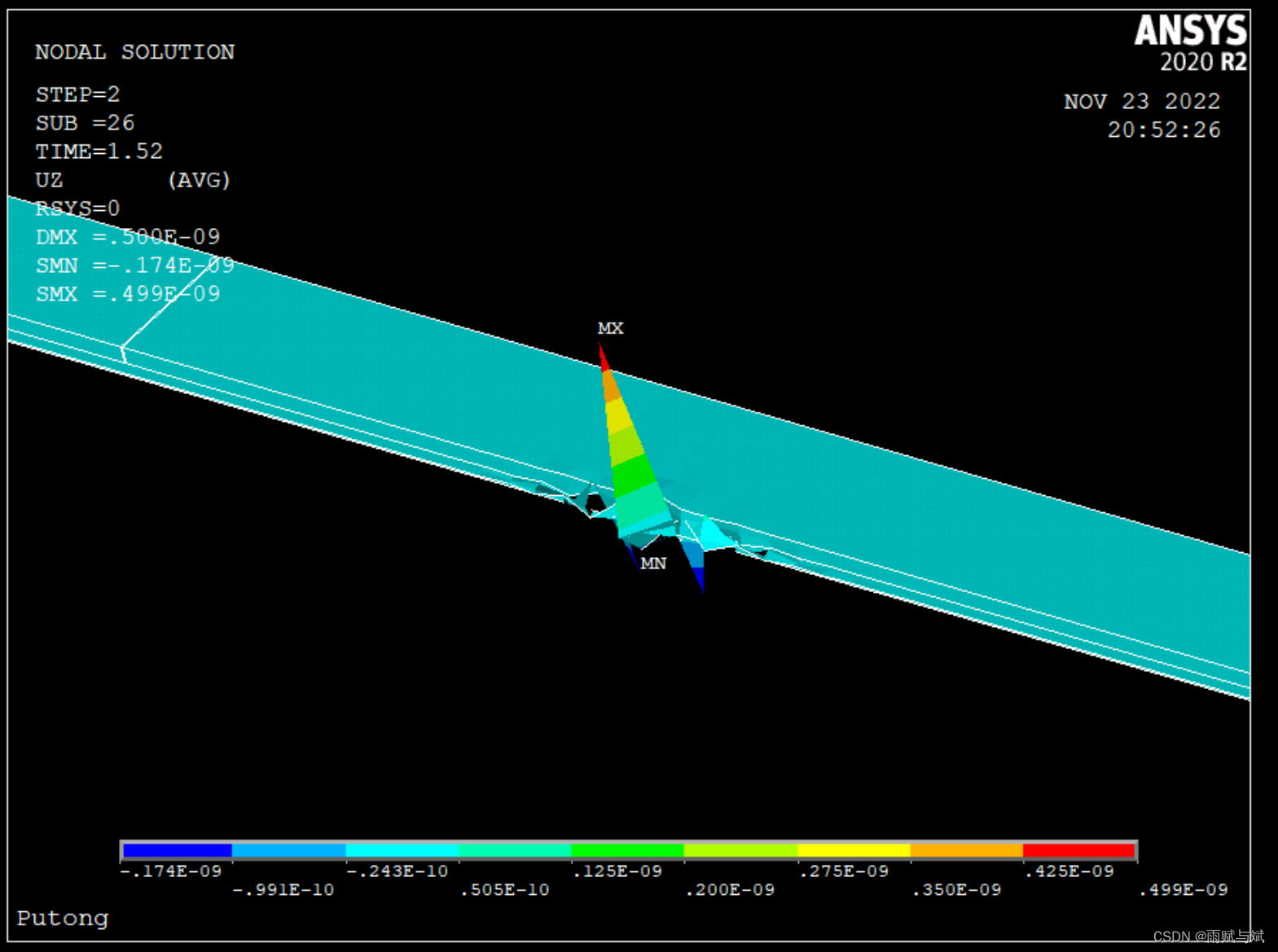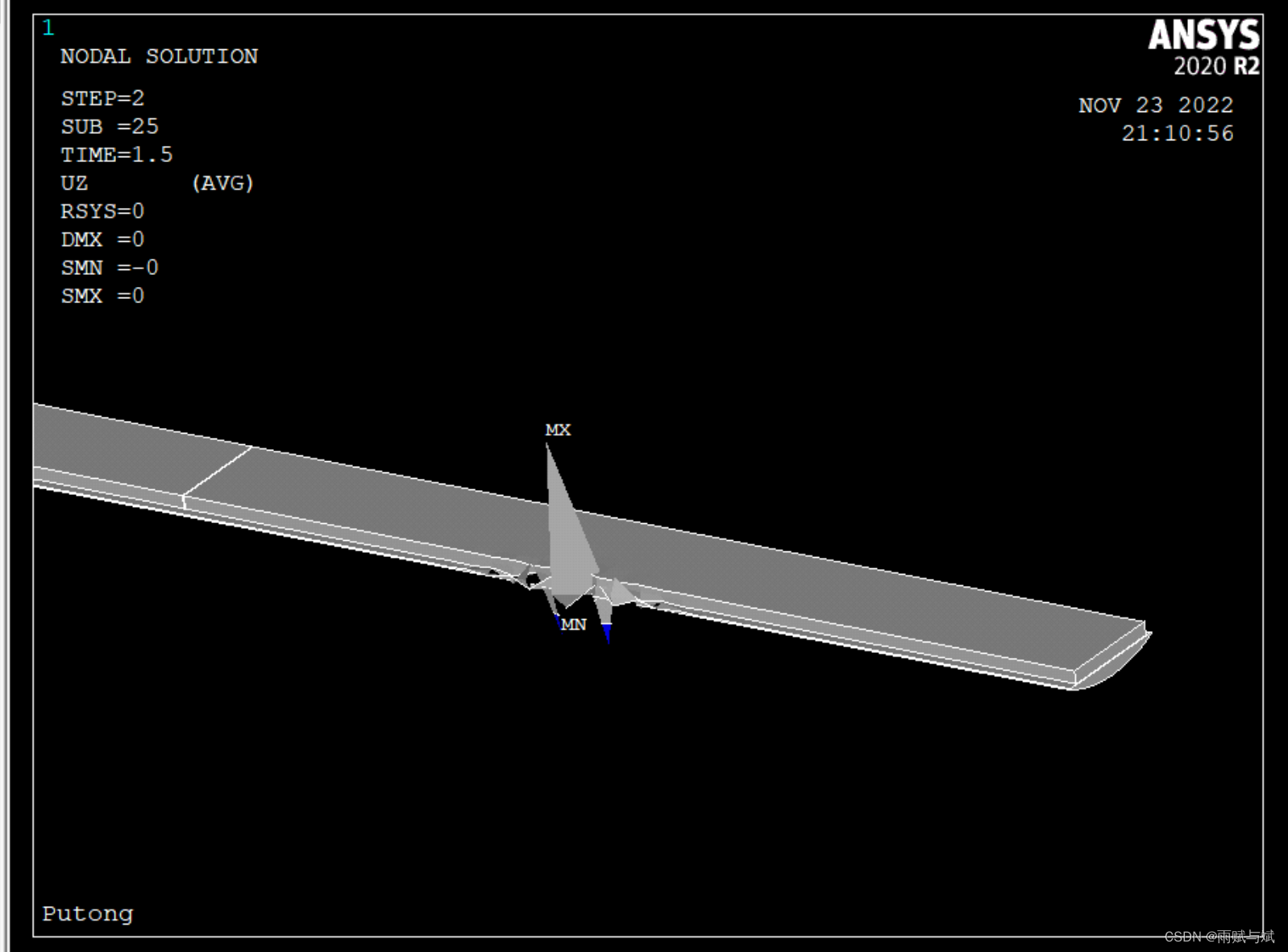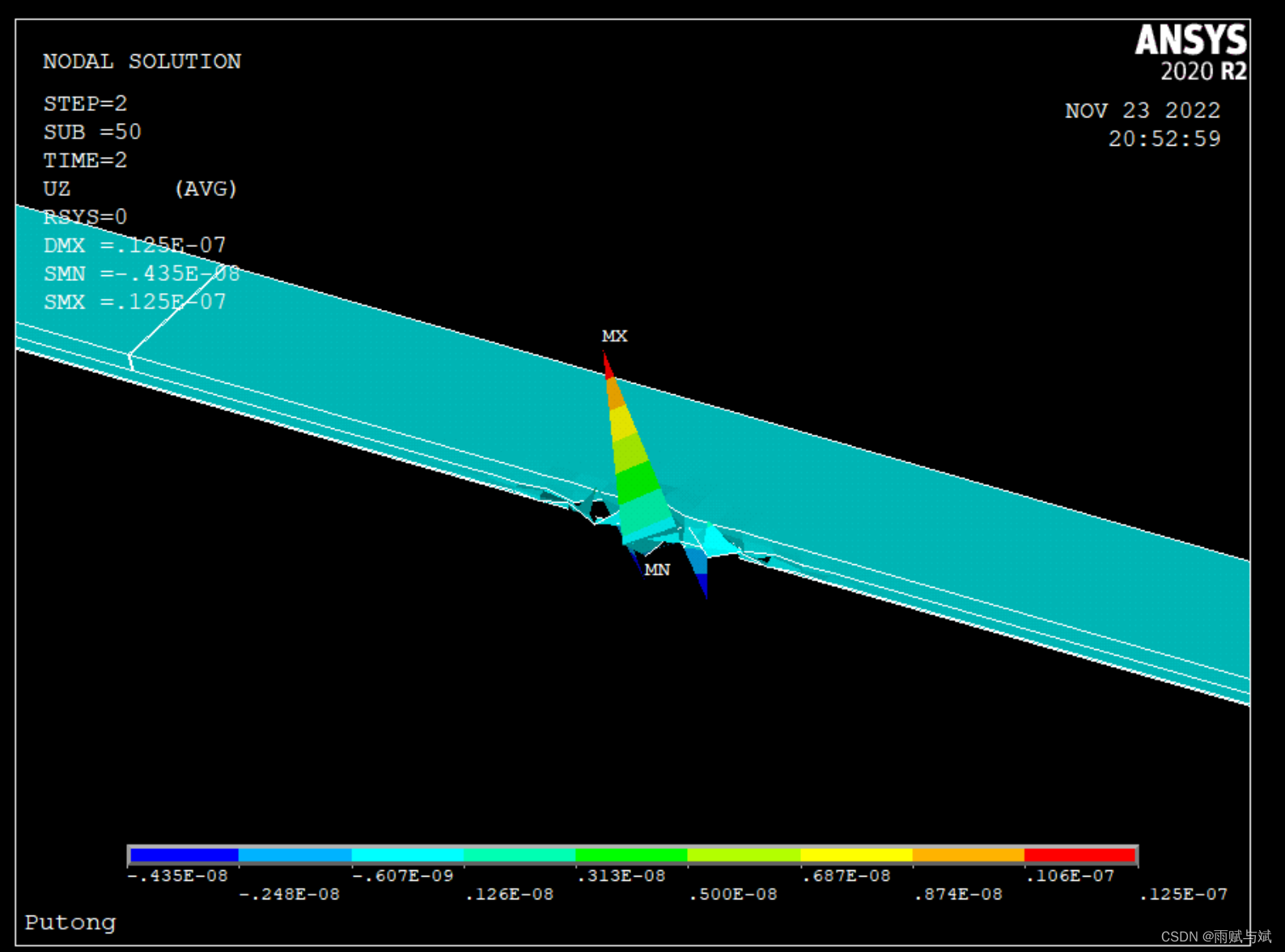 F,load_point,fz,load_f ! 施加载荷 F, NODE, Lab, VALUE, VALUE2, NEND, NINCnsubst,50