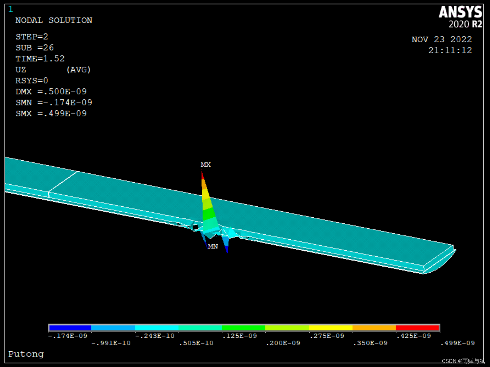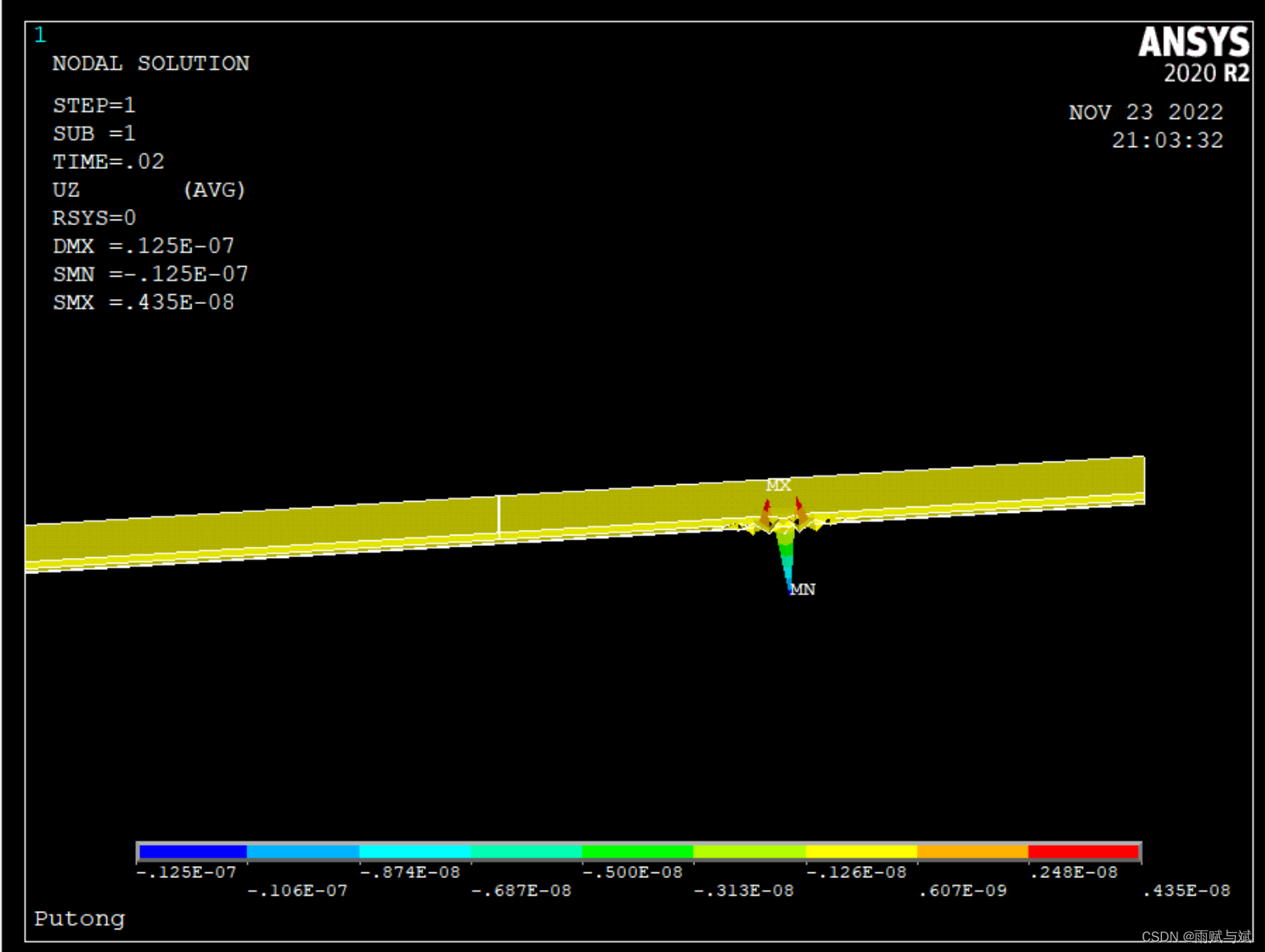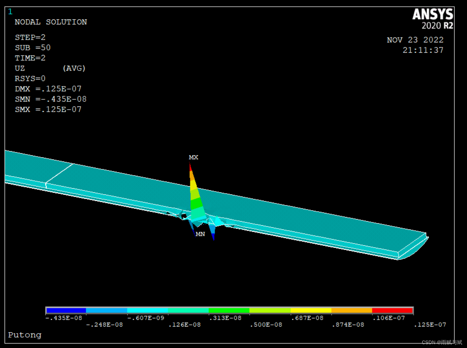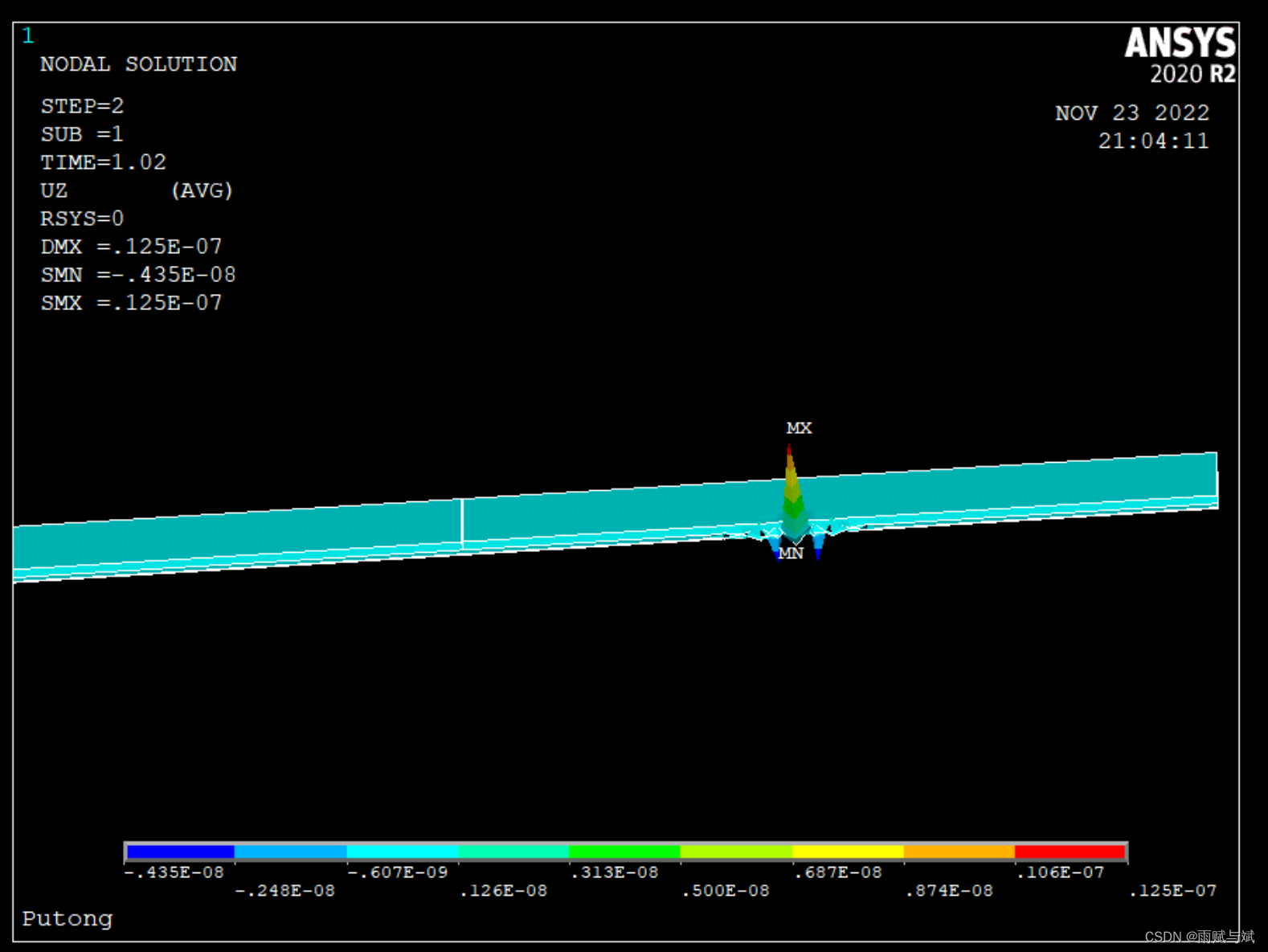 F,load_point,fz,load_f ! 施加载荷 F, NODE, Lab, VALUE, VALUE2, NEND, NINCnsubst,50