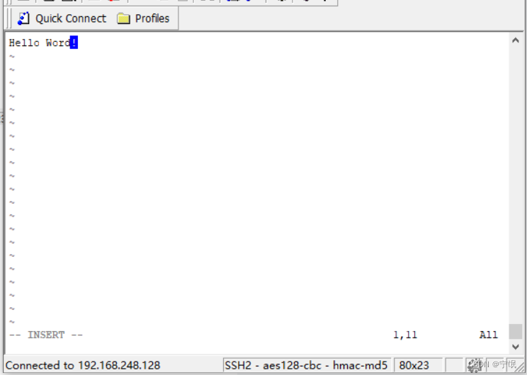(4) 编辑完成后 , 点击Esc退出编辑模式进入底行模式