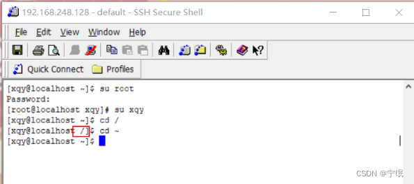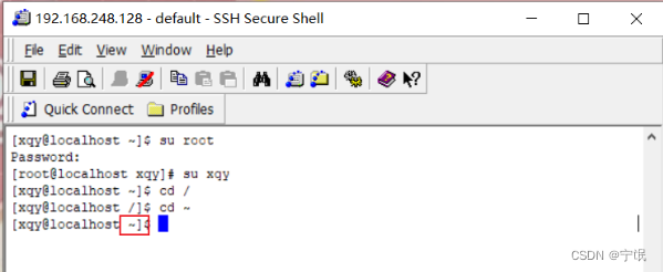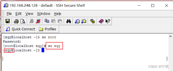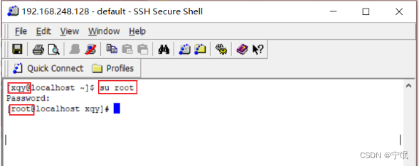 (1) 切换管理员用户root , 需要输入登录时的密码password , 密码不显示
