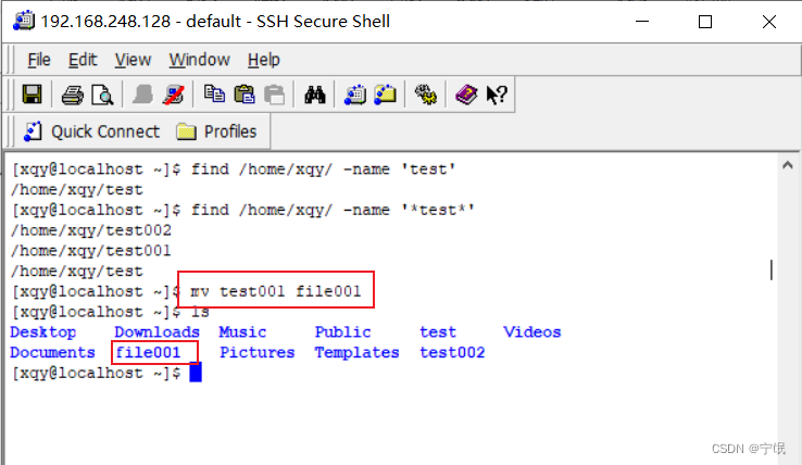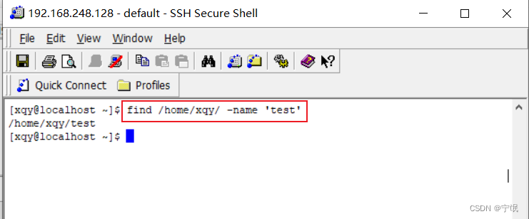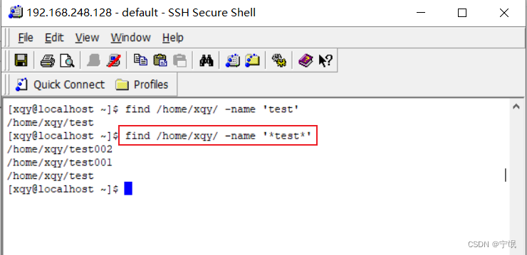 例如 : 查找/home/xqy/下的名称中带有test的文件