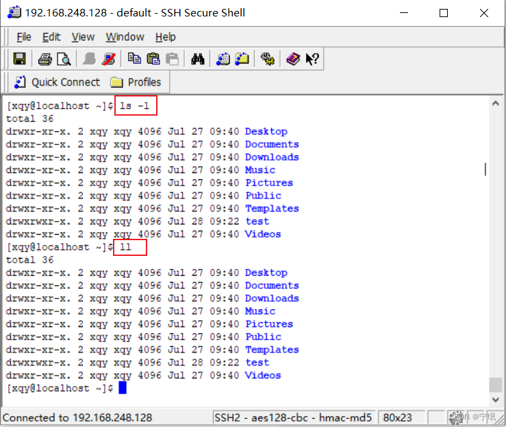 可以查看当前目录下所有目录文件的详细信息(文件创建的时间,文件权限,文件的类型)