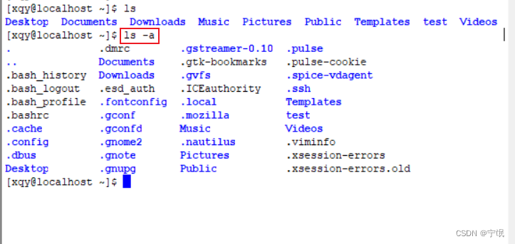 查看当前目录下的所有目录文件 , 包括隐藏文件