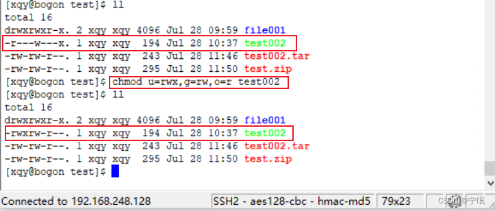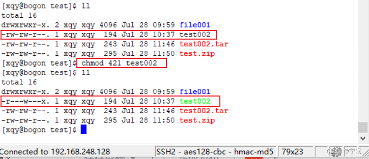 (2)修改文件/目录的权限命令 : chmod 参数 文件名