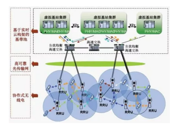 C-RAN下,基站实际上是“不见了”,所有的实体基站变成了虚拟基站。