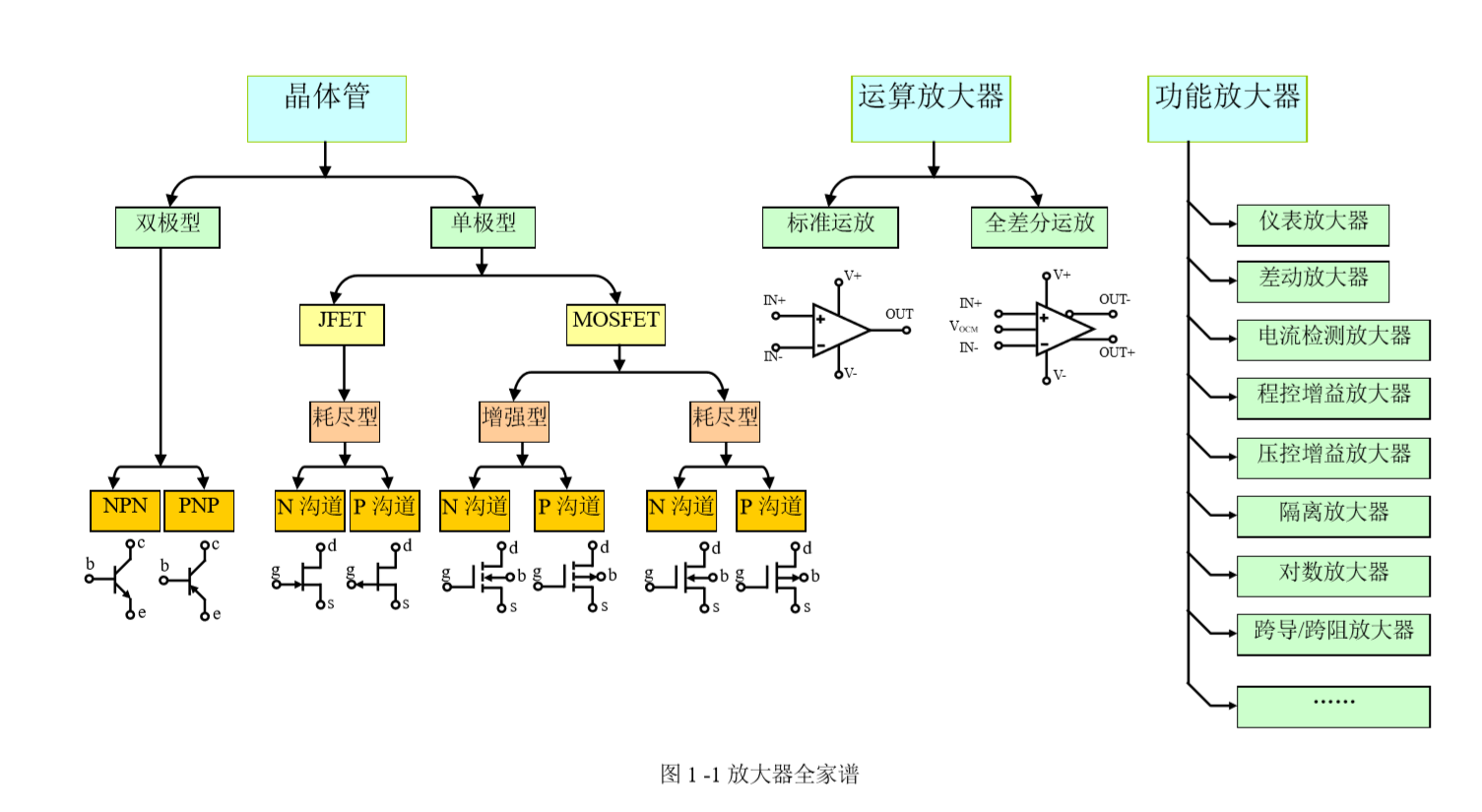 任何一个运算放大器或者功能放大器,内部都以若干个晶体管为主组成,所以,要实 现某个放大电路,如果高级放大器能够实现,那么低级放大器也一定能够实现。