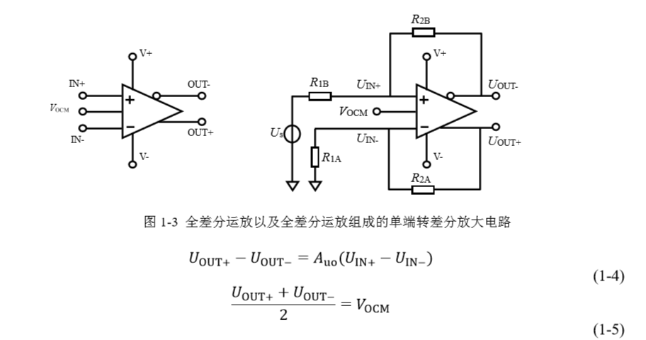 式(1-4)很容易理解,与标准运放的差别仅在于全差分运放的输出也是差分的。即差分 输出值等于差分输入值乘以一个很大的开环增益????uo。
