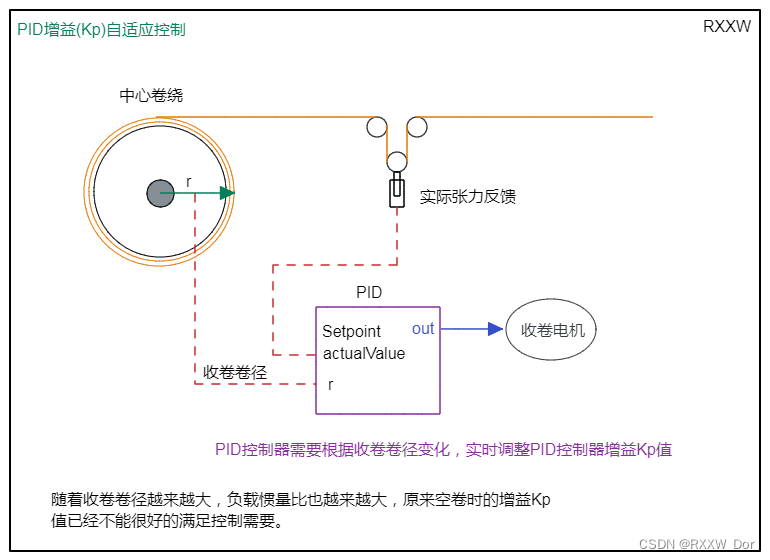 变频器简单张力控制(线缆收放卷应用)_RXXW_Dor的博客-CSDN博客张力控制的开闭环算法,可以查看专栏的其它文章,链接地址如下:PLC张力控制(开环闭环算法分析)_RXXW_Dor的博客-CSDN博客。https://blog.csdn.net/m0_46143730/article/details/127102822受水平和能力所限,文中难免出现错误和不足之处,诚恳的欢迎大家批评和指正。根据速度控制时的卷径变化,我们需要计算出最适合惯量比的增益值。(伺服系统控制不同的惯量比负载时,也需要适时调整相应的增益值),下面我们简单的看下什么是增益自适应控制。