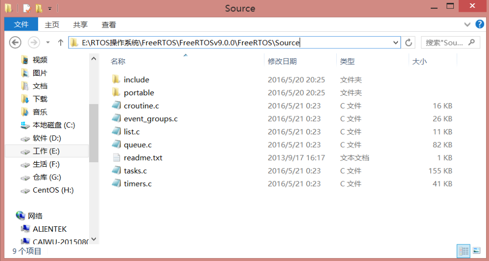 Source 文件夹 里面就是 FreeRTOS 的源码文件,也是我们以后打交道的,可以看出,相比于 uC/OS来说 FreeRTOS 的文件非常少!include 文件夹是一些头文件,移植的时候是需要的,下面的这些.C 文件就是 FreeRTOS 的源码文件了,移植的时候肯定也是需要的。