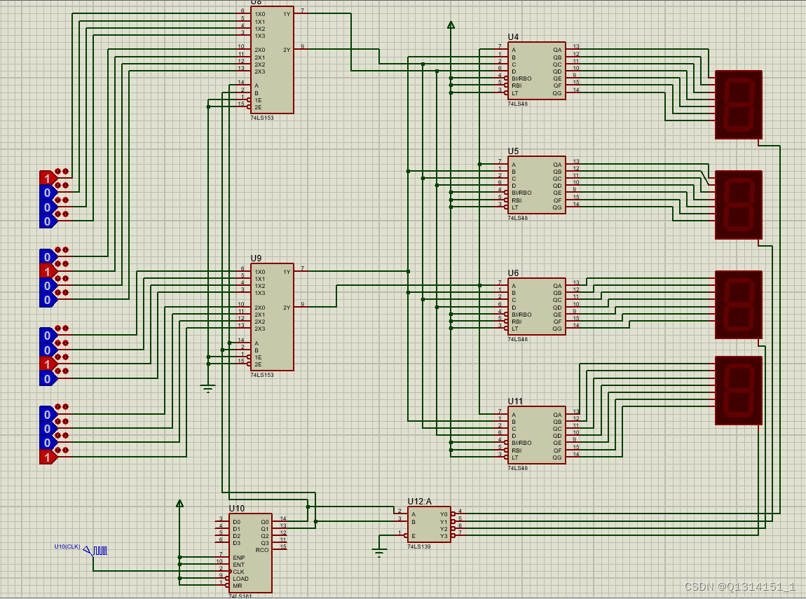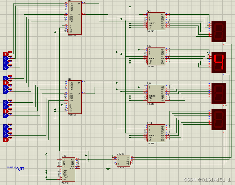 基本原理都相同,但是芯片CD4511更换为74LS48,同时放上74LS139芯片控制对应数码管的阴极,使其接地而正常显示