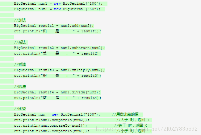 2、BigDecimal加减乘除及大小的比较