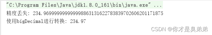 注意 : 结果看并没丢失,原因是这样定义的 BigDecimal.valueOf(234.97);