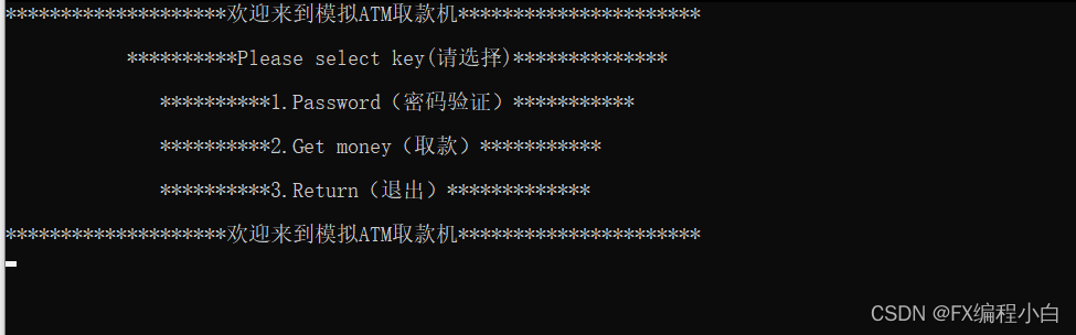 1.设计一个模拟自动取款机ATM,有常用的功能