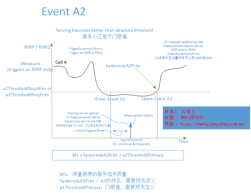 第二步,当UE收到测量报告时A2会进行测,发现满足A2事件,上报测量报告