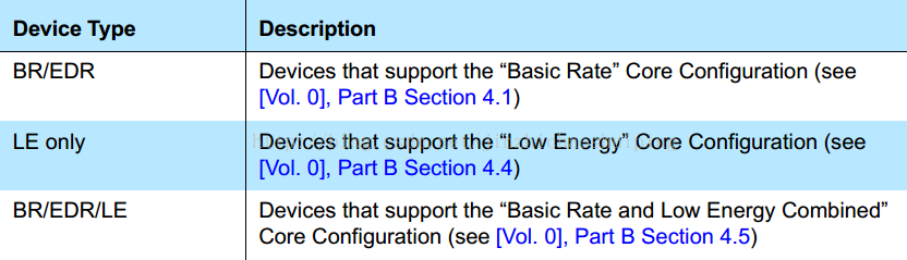 处于LE_only和BR/EDR/LE的器件类型的器件,能在LE物理通道上操作.