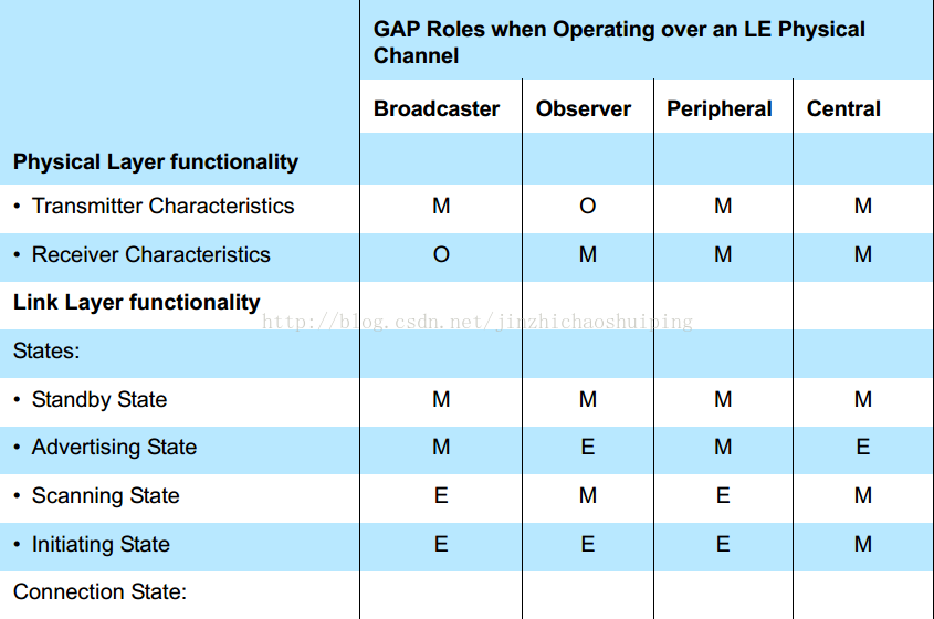 当器件处于LE物理连接层上是,有以下四种GAP角色
