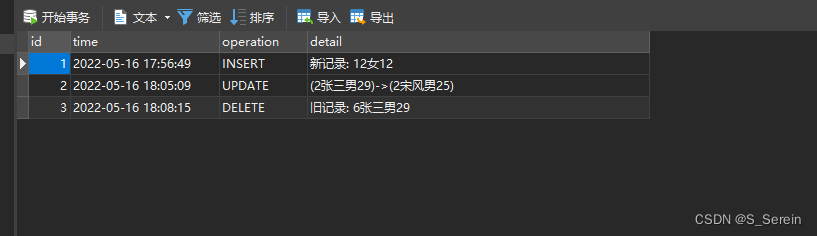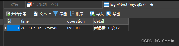 为了测试插入触发器是否生效,我们只需要检查日志表